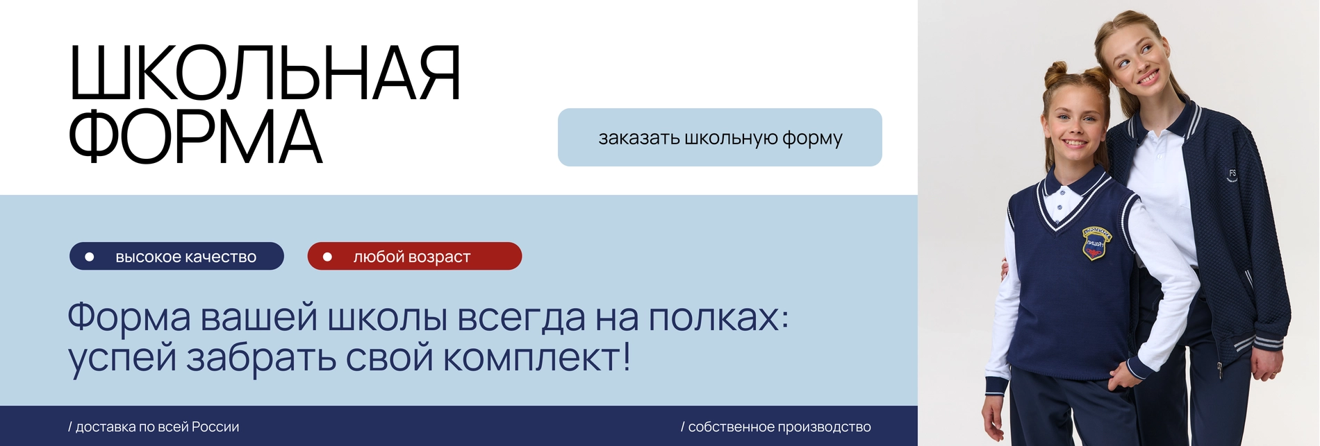 Своим покупателям мы гарантируем высокий уровень обслуживания, регулярное обновление ассортимента, доступные цены. В рамках сотрудничества со школами и другими учебными заведениями предлагаем выгодные условия при оптовых и розничных закупках школьной формы. Если при выборе товаров или оформлении заказа вам потребуется консультация, позвоните нашим менеджерам. Сотрудники компании предоставят всю интересующую вас информацию.